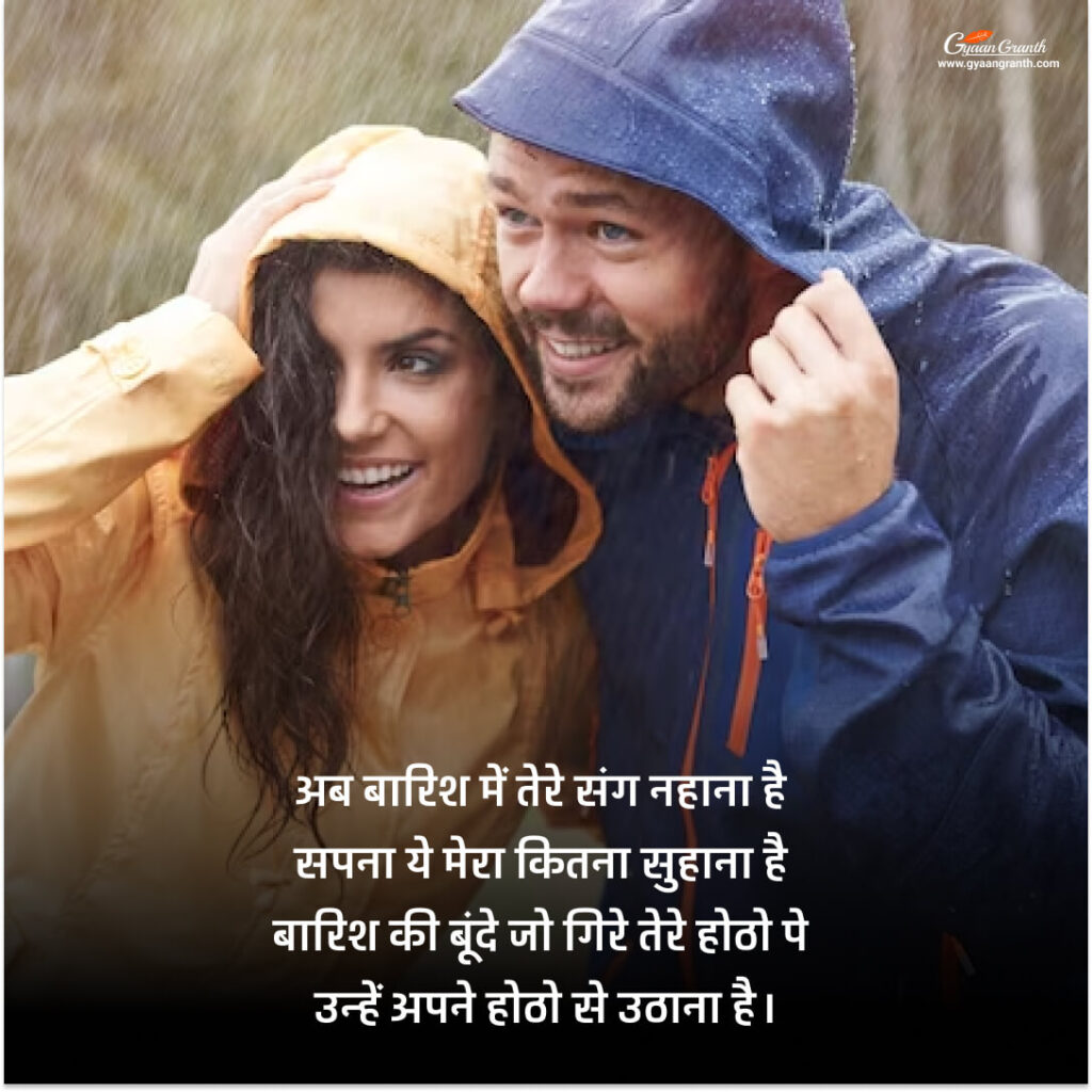 अब बारिश में तेरे संग नहाना है सपना ये मेरा कितना सुहाना है बारिश की बूंदे जो गिरे तेरे होठो पे उन्हें अपने होठो से उठाना है।